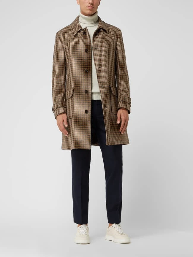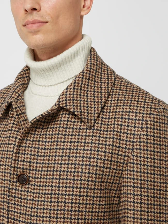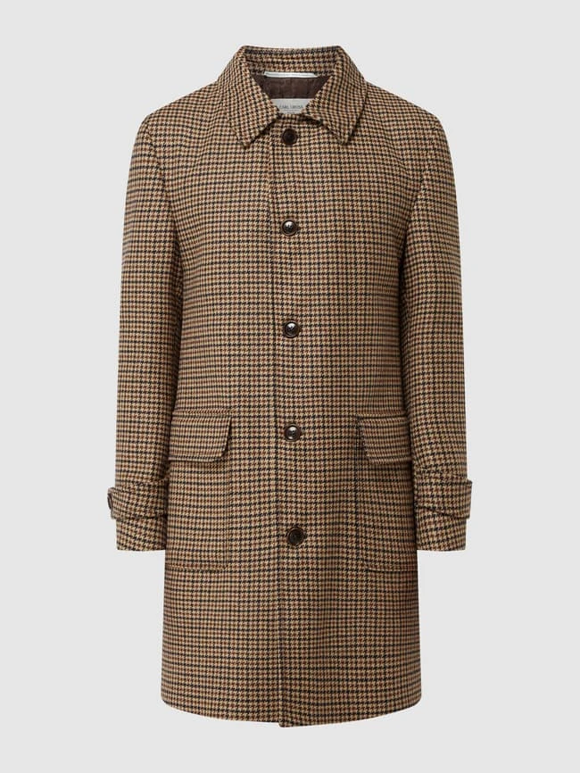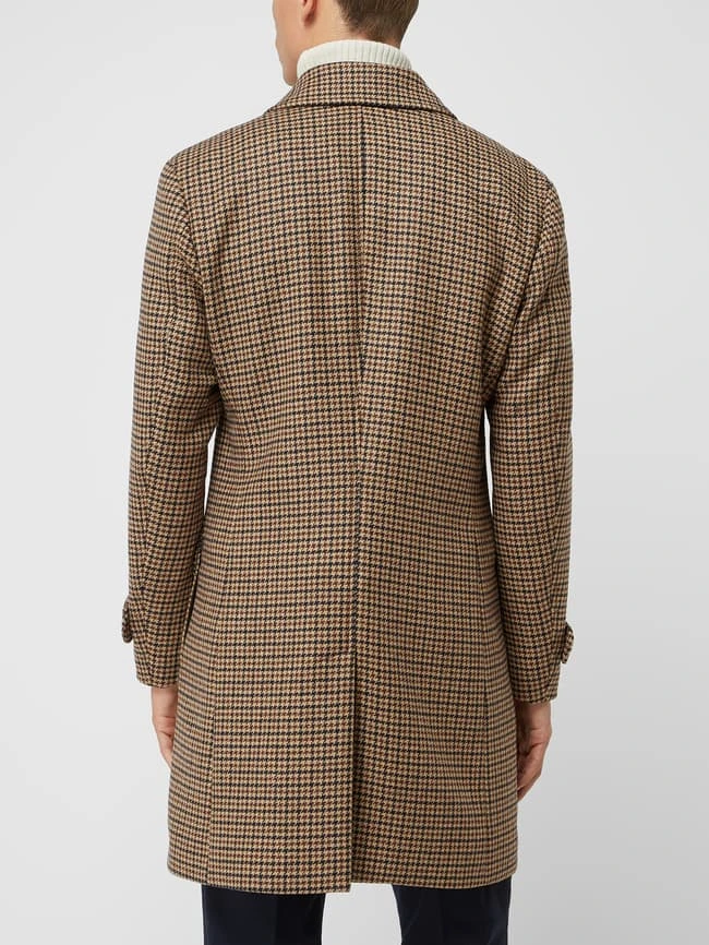 Carl Gross Wollmantel Mit Hahnentritt-Dessin Modell ‚Rowan‘ – Camel