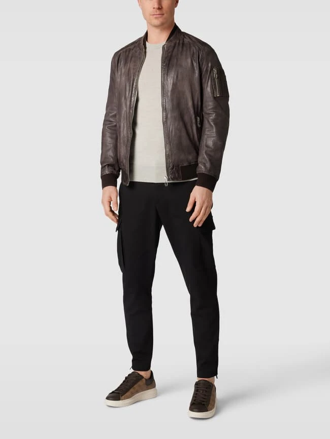 Milestone Lederjacke Mit Stehkragen C – Mittelbraun